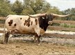 This guy is what it's all about. PEDIGREE, PEDIGREE, PEDIGREE, AND...he's colorful with beautiful markings, built very nicely and correct at birth, clean top and bottom line, and has a ton of horns in his fancy pedigree! on top he goes to $165,000 106.75"TTT Cowboy Tuff Chex, $140,000 92"TTT HR Awesome Reb, the SINDICATED bull who needs no introduction REBEL HR, just to name a few! On bottom he goes to Touchdown of RM, and his Dam is full sister to the $100,000 over 100"TTT RM OK Lady PAT 555. His sire is touching or already over 80"TTT at 31 months old. This bull calf has a promising future as a herd sire and would be so much fun to watch him frow.