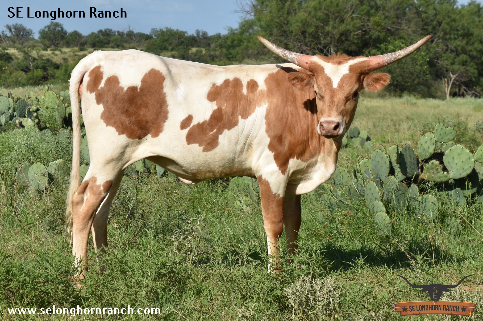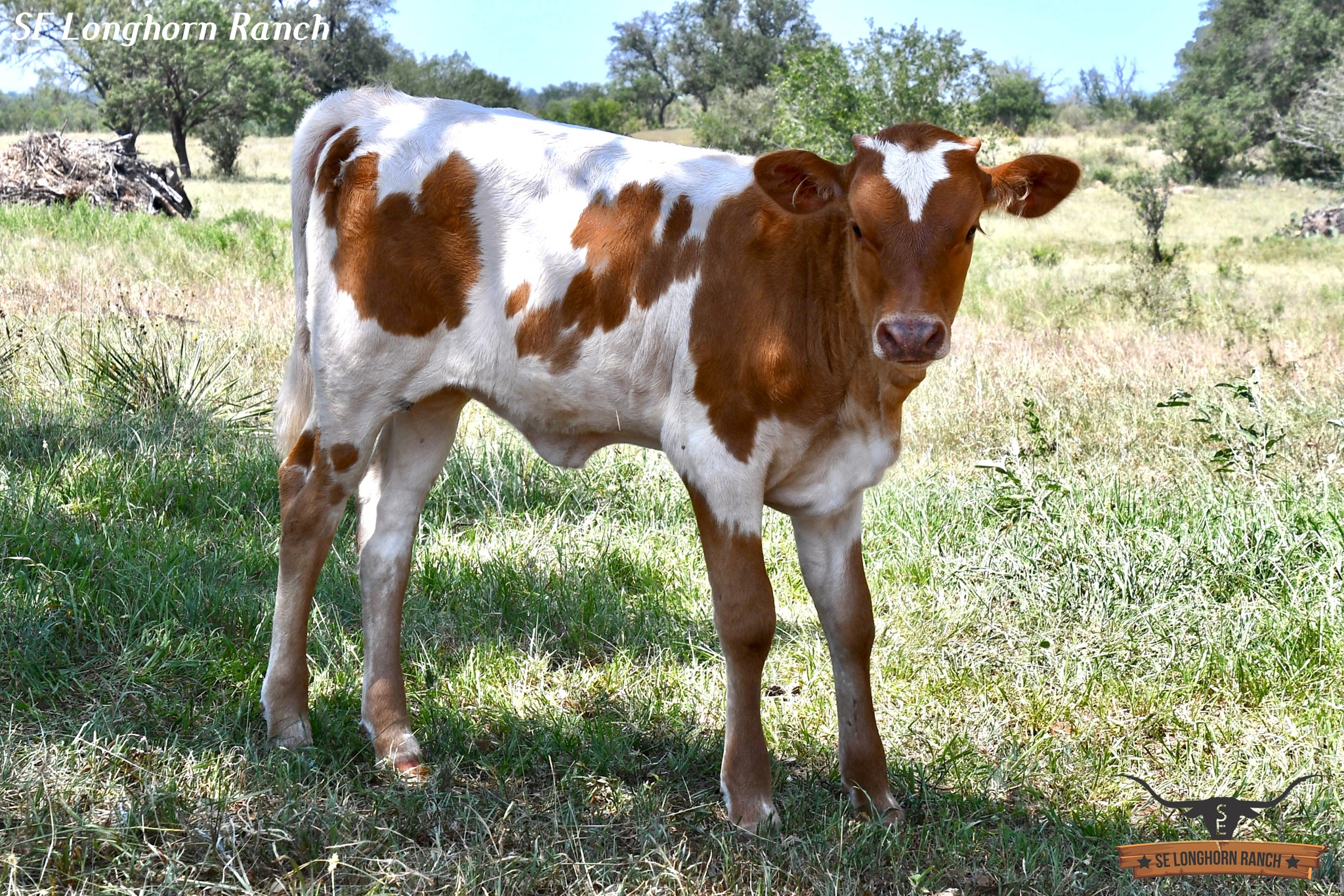 Her name came up on a Facebook post we made for her, Randy Murry commented on the post "STAMP OF APPROVAL" and it was PERFECT since she has a Longhorn image on her forehead! We are excited about this heifer's pedigree, sired by RJF Cowboy Reb to bring in the 106+"TTT Cowboy Tuff Chex and Rebel HR. On the maternal side she goes to the 3S Danica bloodlines, her great grand-dam is Danica's dam sister. We like her color, how she's made, and definitely we love the Stamp of Approval on her forehead.